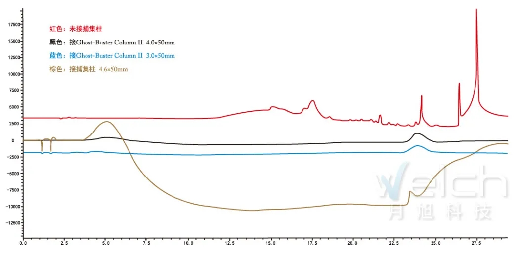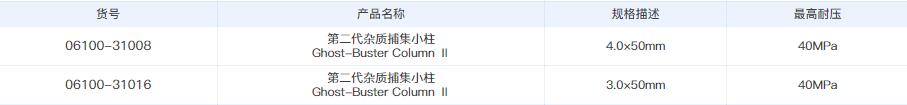 ● 全新推出4.0×50mm,3.0×50mm新一代雜質(zhì)捕集小柱,更完美兼容高比例水相梯度,更加縮短梯度程序中后運行時間,基線運行更穩(wěn)定。