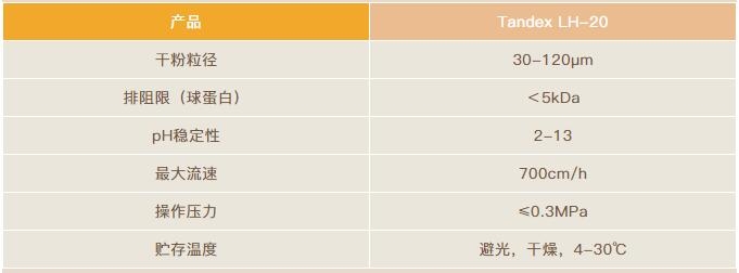 Tandex LH-20是在葡聚糖凝膠Tandex G-25的基礎(chǔ)上經(jīng)羥丙基化處理后得到的產(chǎn)物,不僅可在水中應(yīng)用,也可在極性有機(jī)溶劑或他們與水組成的混合溶劑中膨潤使用,適合中藥有效成分的分離純化以及抗生素和化學(xué)藥物的精細(xì)純化。