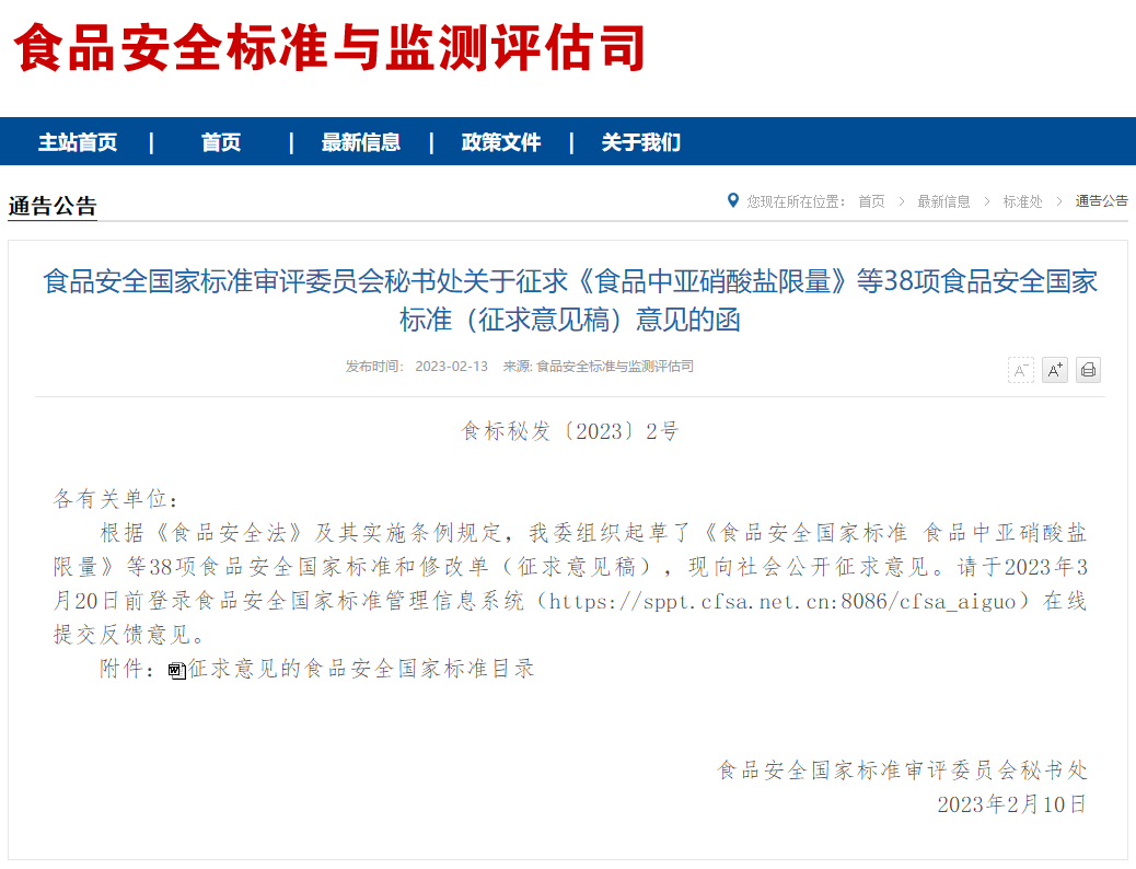 2023年2月13日,guo家衛(wèi)生健康委員會(huì)食品安全標(biāo)準(zhǔn)與監(jiān)測(cè)評(píng)估司官網(wǎng)發(fā)布相關(guān)公告(食標(biāo)秘發(fā)〔2023〕2號(hào)),對(duì)《食品中亞硝酸鹽限量》等38項(xiàng)更新制修訂的食品安全guo家標(biāo)準(zhǔn)的征求意見(jiàn)稿,向全社會(huì)公示并征求意見(jiàn)。更新修訂的《食品安全guo家標(biāo)準(zhǔn)?食品中酸價(jià)的測(cè)定》(GB 5009.229)也包括在內(nèi)。